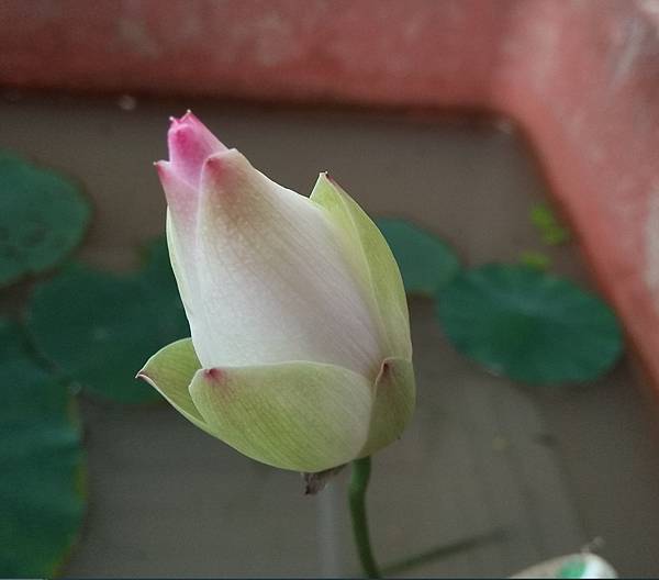 瞧著 盆中含苞的荷花,