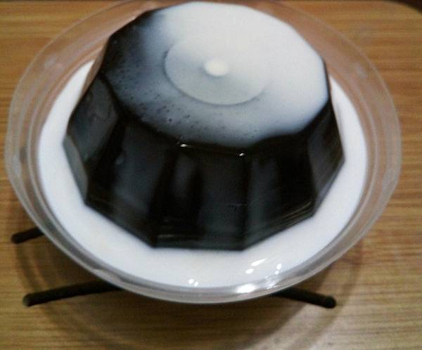 看見冷藏櫃上 擺置的咖啡奶凍,