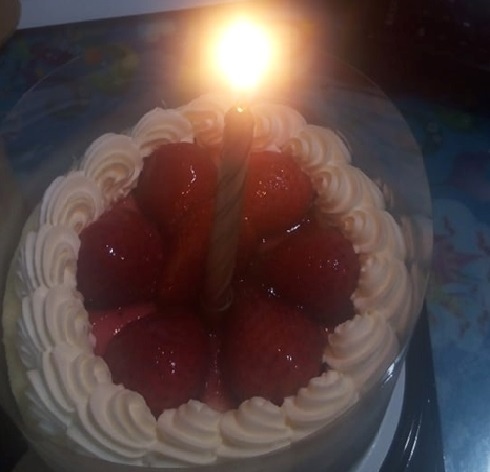 (下午 便臨時外出買蛋糕 晚上才讓他知道)