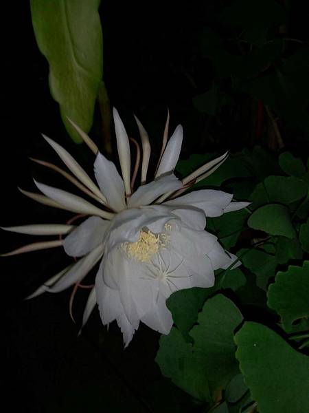 曇花花苞上 已出現白色花瓣