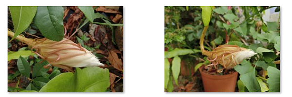 有兩朵曇花花苞 已往上翹