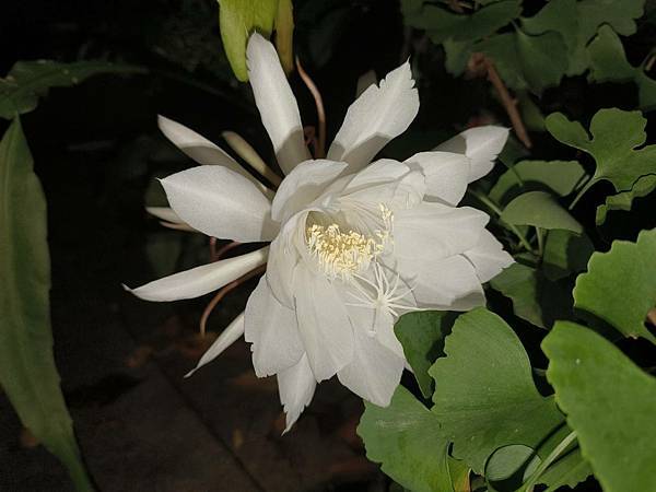 拍著花圃裡綻放的曇花