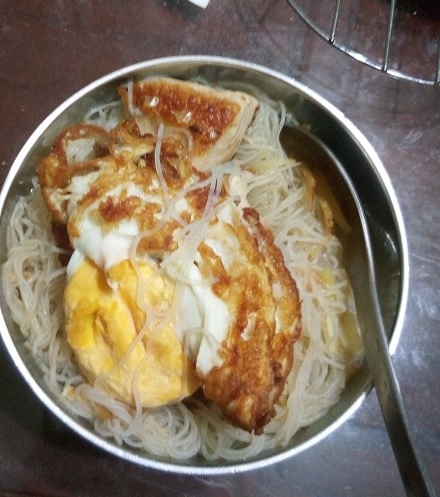 這熱熱的米粉湯 可是用雞湯熱過的哩
